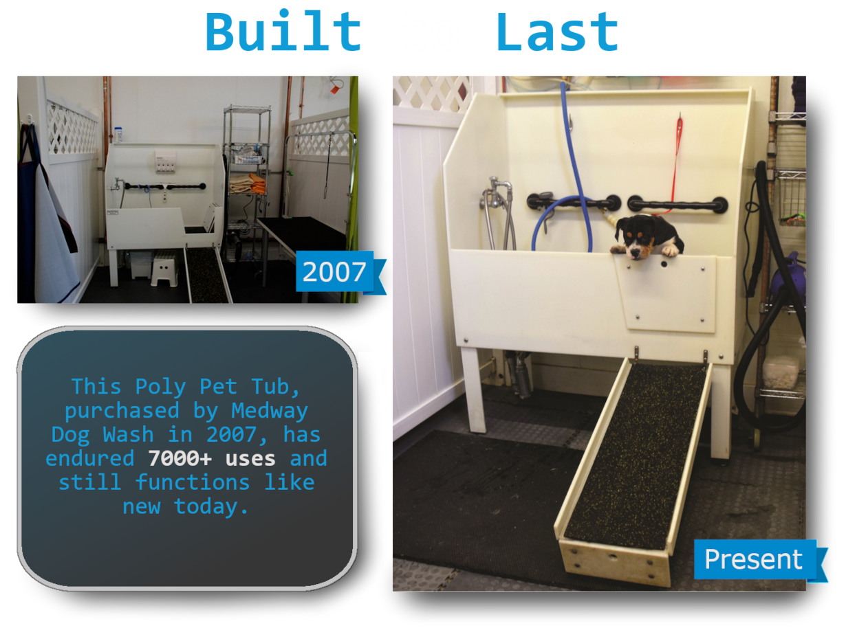 “You asked how I like my Poly Tub….I simply LOVE IT!! I won’t own another tub as long as I groom dogs! So, keep making them for me and other groomers! I am very proud to show my clients my equipment.”