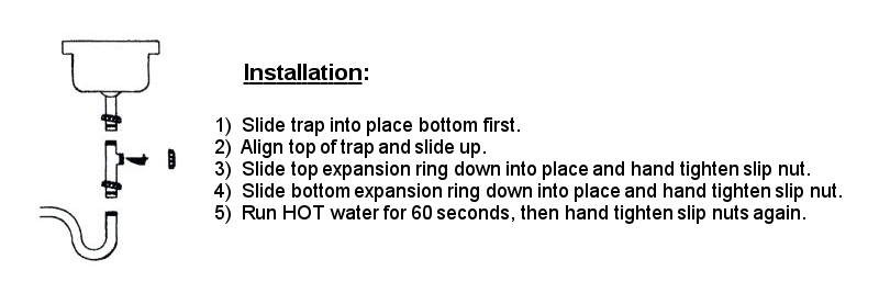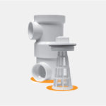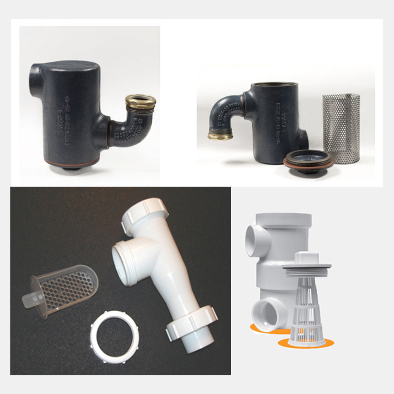 Available in both PVC and ABS versions. Large surface-area filter reduces frequency of cleaning and makes removal of debris easy. Can be configured several different ways, and can be used in place of a P-trap. 1 1/2″ Nom inlet and outlet. Meets standard plumbing performance and dimensional requirements. Download PDF